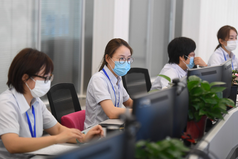 工作人员在浙江省诸暨市社会矛盾纠纷调处化解中心综合信息指挥室处理群众反映的问题(2020年7月16日摄)。新华社记者 黄宗治 摄