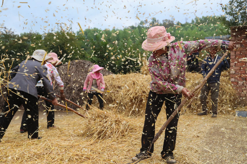 甘肃省定西市渭源县元古堆村村民在脱麦子(2020年8月22日摄)。新华社记者 马希平 摄