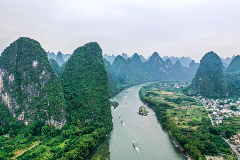 这是2021年4月25日拍摄的漓江广西阳朔段(无人机照片)。新华社记者 曹祎铭 摄