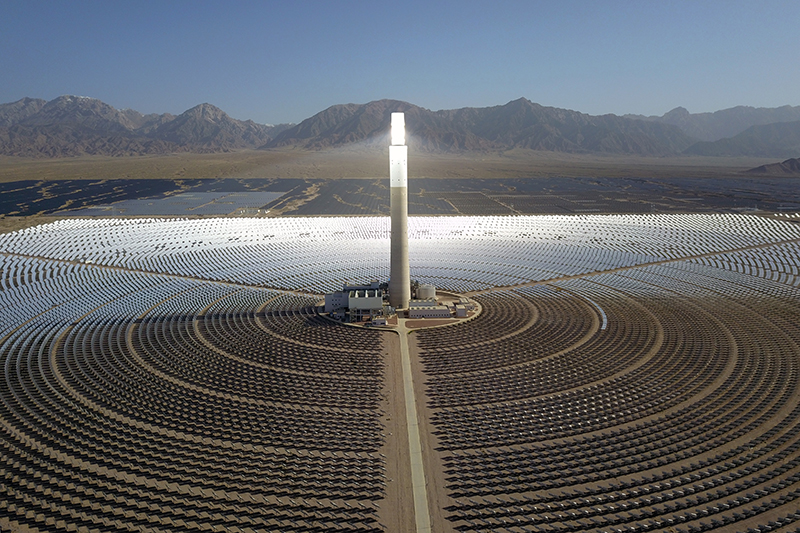 这是2022年6月8日在海西蒙古族藏族自治州德令哈市光伏(光热)产业园拍摄的青海中控德令哈50兆瓦光热电站(无人机照片)。新华社记者 范培珅 摄