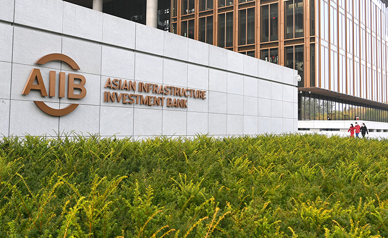 这是亚洲基础设施投资银行(亚投行)标志(2021年10月25日摄)。新华社记者 李贺 摄