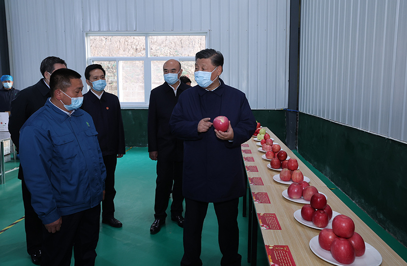 10月26日至28日,中共中央总书记、国家主席、中央军委主席习近平在陕西省延安市、河南省安阳市考察。这是26日下午,习近平在延安市安塞区高桥镇南沟村苹果洗选车间,察看当地种植的苹果。新华社记者 鞠鹏 摄