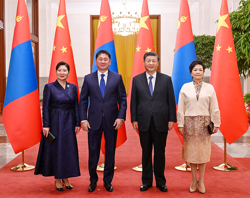习近平欢迎呼日勒苏赫访华。习近平指出,我们时隔两月如约再次会面,充分体现了中蒙关系的高水平。中蒙互为重要邻国,保持中蒙长期稳定的睦邻友好合作关系,符合两国人民根本利益。中国坚持亲诚惠容理念和与邻为善、以邻为伴周边外交方针,高度重视深化中蒙友好互信和利益融合。双方携手抗疫,守望相助,弘扬了传统友谊。两国各领域交流合作不断走深走实,树立了国与国交往的典范。面对不稳定性不确定性日益上升的国际环境,中方愿同蒙方以构建两国命运共同体为引领,推动中蒙全面战略伙伴关系行稳致远,更好造福两国人民。
