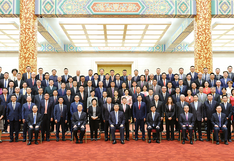 5月8日,党和国家领导人习近平、王沪宁、蔡奇等在北京人民大会堂会见第十届世界华侨华人社团联谊大会代表。新华社记者 李学仁 摄