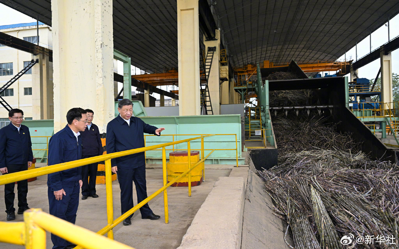 14日下午,习近平总书记在广西来宾市考察调研。他先后来到来宾市国家现代农业产业园黄安优质“双高”糖料蔗基地和东糖凤凰有限公司,了解甘蔗良种繁育、种植收成、糖产业发展等情况。(文字记者:林晖;摄影记者: 谢环驰、王晔、燕雁、岳月伟)