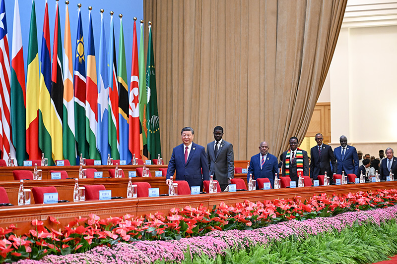 9月5日上午,国家主席习近平在北京人民大会堂出席中非合作论坛北京峰会开幕式并发表题为《携手推进现代化,共筑命运共同体》的主旨讲话。新华社记者 鞠鹏 摄