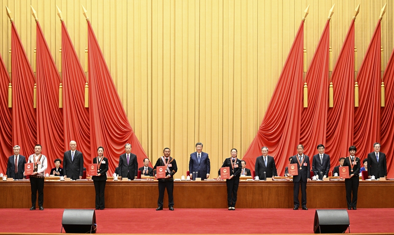 9月27日,全国民族团结进步表彰大会在北京举行。习近平、李强、赵乐际、王沪宁、蔡奇、丁薛祥、李希等出席大会。新华社记者 谢环驰 摄