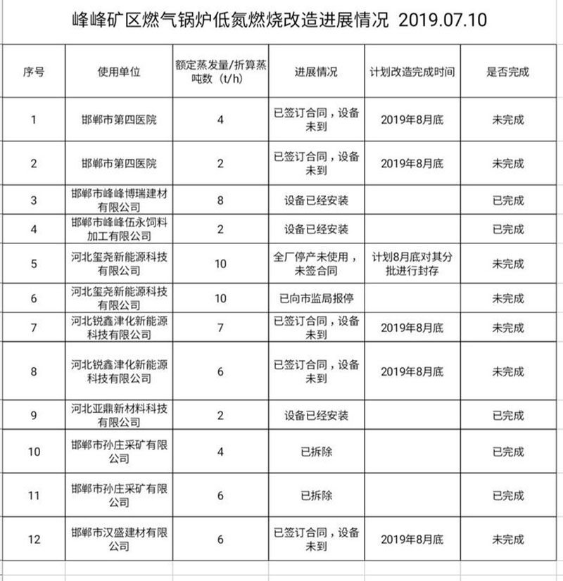 近日。峰峰矿区生态环境分局再次召开燃气锅炉低氮改造调度会,对燃煤锅炉治理工作无进展和进展慢的企事业单位进行通报,要求各责任单位对照年度目标任务,倒排工期,挂账督办,强力攻坚;要成立工作专班,逐项目调度,确保按期前完成目标任务,为秋冬季腾出环境容量。