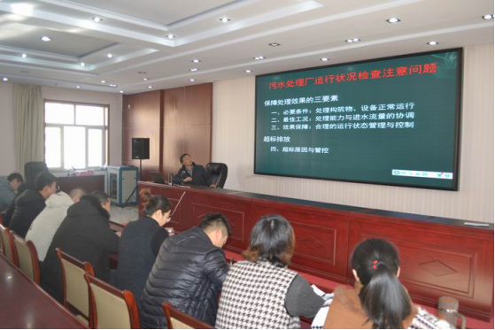 11月23日上午,张北县分局组织开展污水处理行业执法检查要点培训,培训以理论与实践相结合的方式,特邀请河北建筑工程学院南国英教授授课。副局长刘庠坤、王妍妍组织监察大队、法宣科、水办、监控中心等相关科室执法人员参加了培训学习。
