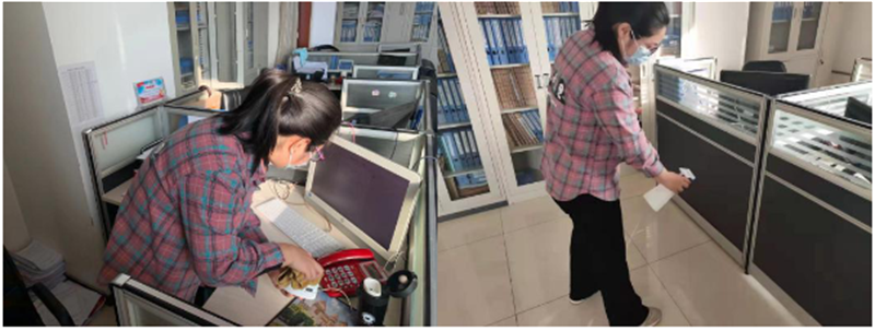 坚守岗位值班,强化防控措施。认真落实疫情防控责任,责任到人,任务到岗,继续积极协调联系采购防护物资,值班人员每天对公共区域、会议室、楼道、厕所等部位进行两次全方位消毒,值班司机每天对公务用车进行检查并做全方位消毒。在电梯口设置检测点,对来单位人员进行逐一检测,逐一建档立卡,并逐一填报登记,做到科学防范,确保万无一失。