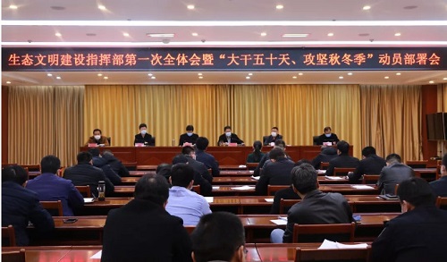 部署会上,街道办、大社镇党委书记分别就散煤管控、露天禁烧工作作了深刻检查,城管执法局局长就主城区道路保洁作表态发言,区生态环境分局局长张清强宣读了《峰峰矿区生态文明建设指挥部工作实施方案》;区政府副区长武建生宣读关于印发《峰峰矿区大气污染综合治理“大干五十天、攻坚秋冬季”工作方案》,区长孙亚鹍做了重要讲话。