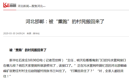 新华社石家庄3月30日电(记者范世辉)“主任,明天给看看俺家门口的污水管网接口在哪儿呗?明后天家里厕所就装修完了,该接口了。”正在污水管网终端忙活的河北邯郸峰峰矿区野庄村村主任赵翔被村民张书兰叫住了。“打算回来住了?”“对,全家人都回来住!”