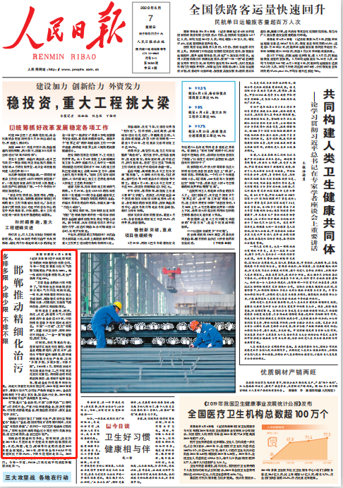 《人民日报》头版宣传报道邯郸市推动精细化治污典型经验做法