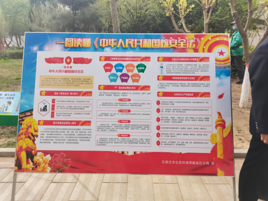 2021年4月15日是我国第六个全民国家安全教育日,今年的主题是:“践行总体国家安全观,统筹发展与安全,统筹传统安全与非传统安全,营造庆祝建党100周年良好氛围。”为深入学习贯彻习近平总书记总体国家安全观重大战略思想,切实增强维护国家安全的政治自觉、思想自觉和行动自觉,鹿泉区生态环境分局根据上级相关要求,认真组织开展了普法宣传活动。