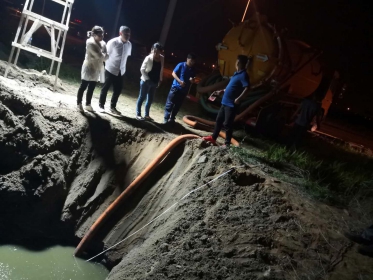 在入海排污口排查整治“查、测、溯、治”四部曲中,唐山市已全面完成查、测、溯工作,目前转入专项治理阶段。“这张抽水的照片是2019年7月2日在唐山曹妃甸映美科技有限公司拍摄的。这个排污口是企业建设初期临时设置的生活污水排污口。项目建成投产后,对污水纳网管理,但排污口未进行封堵和拆除。在杏彩门监督下,排污口内存余的污水被回抽处理,沟渠随后被清理填埋。”李艳翠介绍。