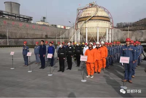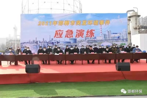 近日,邯郸市生态环境局联合武安市人民政府在河北华丰能源科技发展有限公司液氨罐区举行2021年邯郸市突发环境事件应急演练。