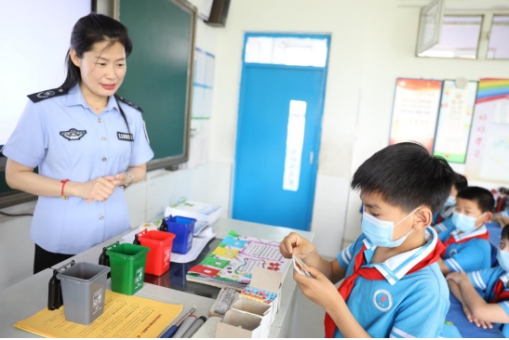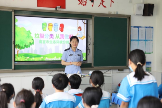 在课堂上,工作人员以《环保知识进校园 保护环境从我做起》为主题,从环境污染的种类讲起,重点解读了大气污染、水污染、垃圾污染等污染种类,并为同学们讲解垃圾分类,通过教具让同学们模拟如何分类投放垃圾。同时倡导同学们养成随手关灯、不乱扔垃圾、绿色出行等低碳生活方式。