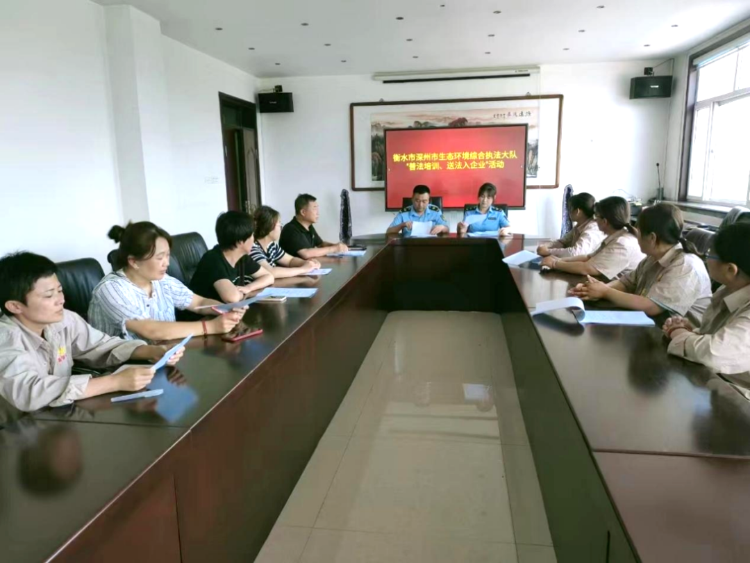 为进一步提高企业自觉遵守生态环境保护法律法规的主体意识,全面落实“谁执法谁普法”的普法责任制,衡水市生态环境综合执法支队组织各县市区分局开展多形式“送法入企”活动,助推企业的绿色发展。
