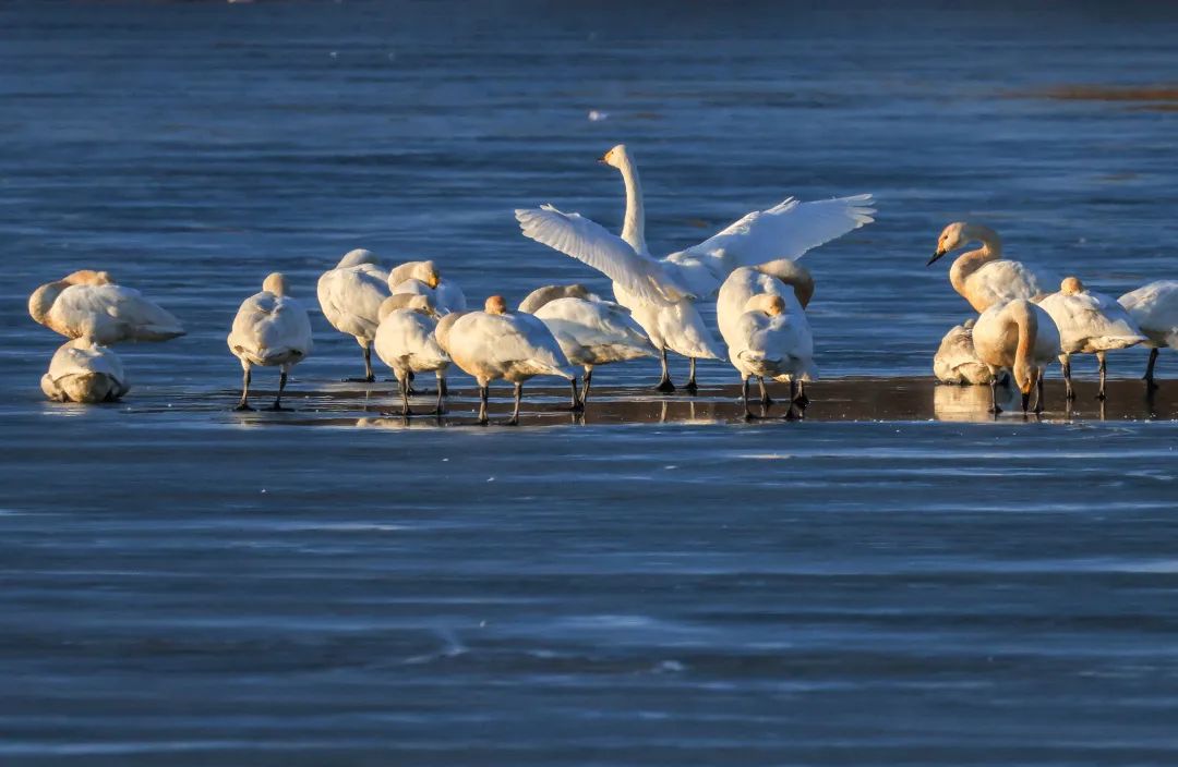 我省地处东亚-澳大利西亚候鸟迁徙路线,每年有大批候鸟途经我省停歇、觅食、繁衍生息。眼下正值秋冬候鸟迁徙季,在唐山市迁西县滦河湿地公园,成群结队的候鸟或振翅飞翔、或漫游于水面,构成了一幅幅美丽的冬日生态画卷。