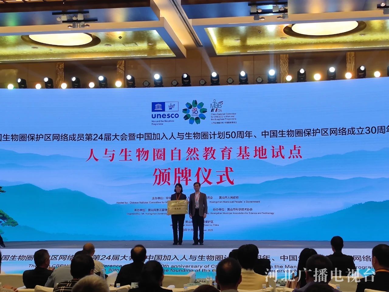 11月27~30日,中国生物圈保护区网络成员第24届大会暨中国加入人与生物圈计划50周年、中国生物圈保护区网络成立30周年大会在安徽黄山召开。在11月28日的开幕式上,衡水湖被中国人与生物圈国家委员会确定为“人与生物圈自然教育基地试点”并授牌,这也是此次大会唯一一家自然教育基地试点单位。