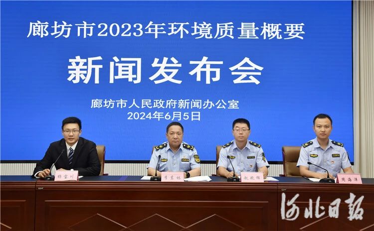 6月5日,廊坊市人民政府新闻办公室召开廊坊市2023年环境质量概要新闻发布会。图为现场。河北日报、河北日报客户端记者刘杰摄