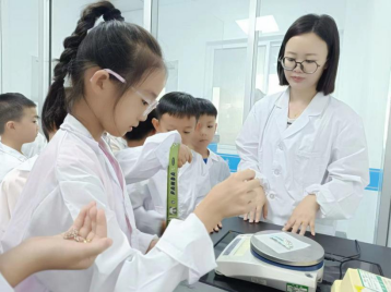 接下来进入实验区域,工作人员详细介绍了环境监测工作的职责和内容,同时强调实验室参观的安全问题和注意事项。随后带领小朋友们有序参观了水质样品间、天平室和理化实验室,演示了酸碱中和、沉淀反应等与监测相关的趣味小实验,并引导大家亲自动手操作,通过近距离观摩,深入体验了环境监测的奇妙世界。