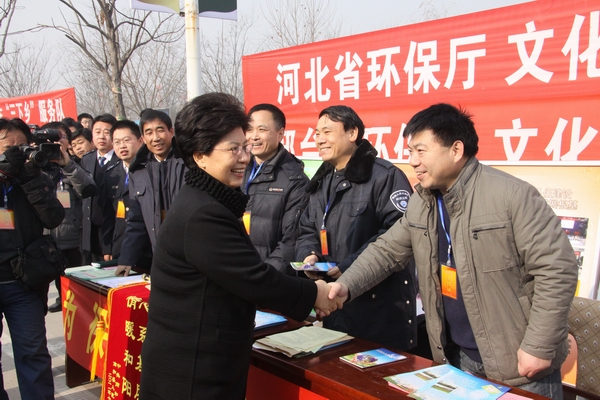 在集中示范活动中,我厅下乡分队克服天气寒冷的影响,组织了环保宣传资料的发放和环保成就展,现场受理了环境违法举报,进行了环保政策、法律、法规的宣讲,受到了带队的孙士彬副省长表扬和广大群众的称赞。