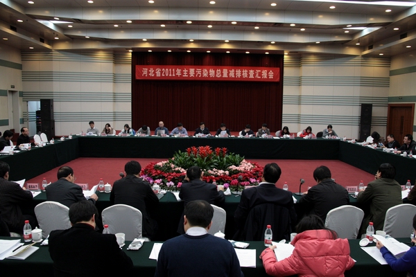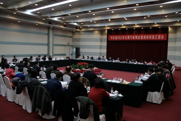 1月5日,2011年度河北省主要污染物减排核查工作汇报会在石家庄召开。省政府于万魁副秘书长主持会议并致辞。省环保厅姬振海厅长代表省政府向环保部核查组汇报了我省2011年度主要污染物总量减排工作情况。省环保厅、发改委、公安厅、国资委、工信厅、农业厅、住建厅、统计局、电力公司相关领导、省环保厅有关处室及各设区市环保局有关人员参加了汇报会。