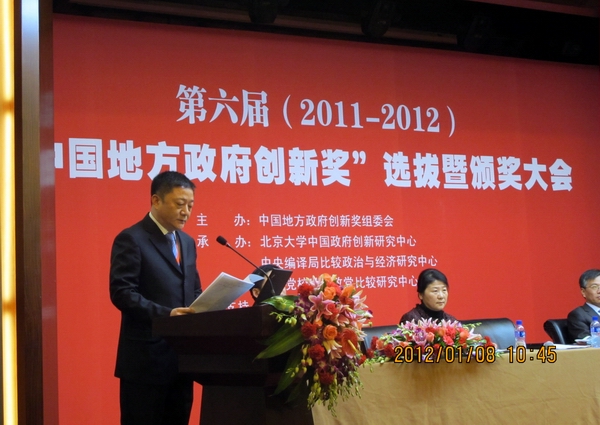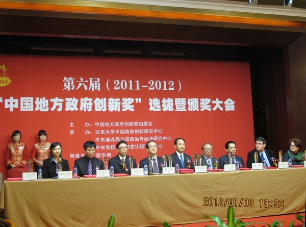 “中国地方政府创新奖”于2000年由中央编译局比较政治与经济研究中心、中央党校世界政党比较研究中心和北京大学中国政府创新研究中心联合创办,该奖项每两年举行一次。为了突出该奖项的科学性和独立性,从第五届开始由北京大学中国政府创新研究中心主办。这是我国历史上第一个由学术机构独立举办,按照科学的评估程序和评选标准对政府创新进行客观评估的民间奖项。第六届“中国地方政府创新奖”评选活动于2011年3月在北京启动,共收到213个地方政府申报的创新项目。