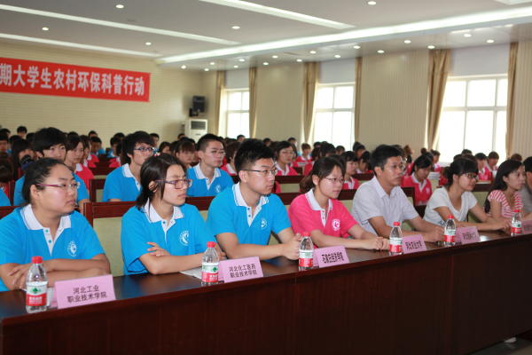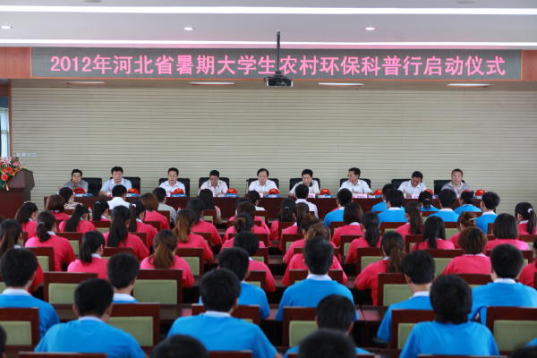 7月2日,由河北省科学技术协会、河北省环境保护厅、共青团河北省委主办的“2012年河北省暑期大学生农村环保科普行”启动仪式在河北工业职业技术学院举行。活动的主题为“清理污染源、建设新农村、享受好生活”。河北省科学技术协会常务副主席李宗民、河北省环境保护厅巡视员轩水林、河北省环境科学学会会长孙彦敏、河北工业职业技术学院院长贾俊礼出席启动仪式并致辞。河北省环境科学学会、河北省环境宣传教育中心、石家庄市环境保护局、河北工业职业技术学院、河北农业大学、石家庄经济学院、河北科技大学环境科学与工程学院、河北医科大学公共卫生学院、石家庄学院资源与环境系、河北师范大学、河北化工医药职业技术学院、石家庄科技工程职业学院、东北大学秦皇岛分校等单位的领导和相关人员、大学生志愿者代表,共计200多人参加了启动仪式。
