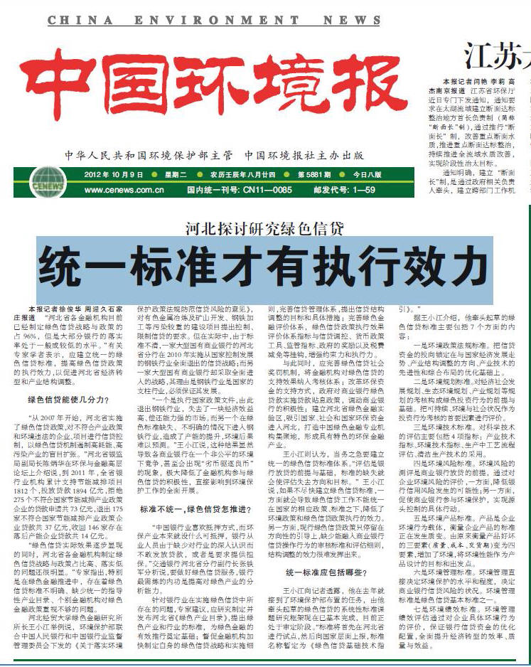 河北探讨研究绿色信贷--统一标准才有执行效力