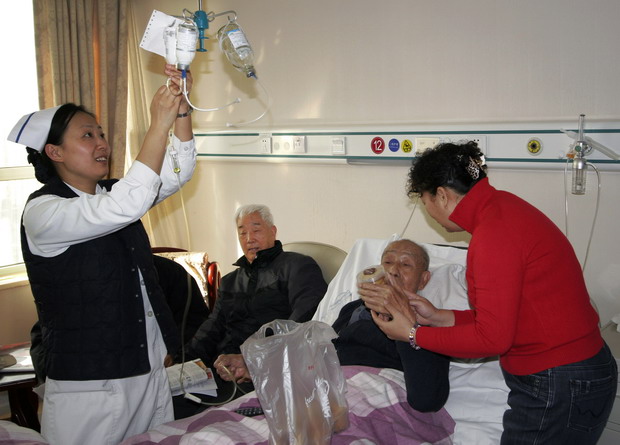 会后,离休干部代表及离退休干部处到医院看望了离休支部老书记王志远,把十八大文件精神带到了病房,并代表厅领导送去了慰问品及慰问金。