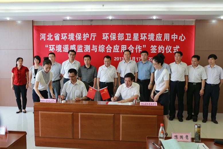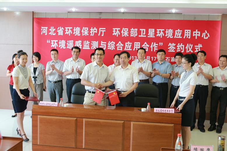 7月17日,省环保厅与环保部卫星环境应用中心签署了环境遥感监测与综合应用合作协议,这意味着我省将利用卫星遥感技术监测大气、水、生态等环境状况,成为全国第一个在地面环境监测的基础上开展全要素、全覆盖“天地一体化”立体监测的省份。环保部监测司司长罗毅,环保部卫星环境应用中心主任吴国增,省环保厅厅长陈国鹰出席,监测司、卫星环境应用中心、省环保厅等其他相关人员共计50余人参加签约仪式。