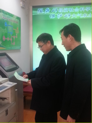 在现场检查时,恰逢石家庄市玉晶玻璃有限公司工作人员闫伟前来大厅办理建设项目验收申请,杨智明副厅长主动上前询问,并热情协助企业人员办理相关手续,来办事的闫伟同志连声感谢。