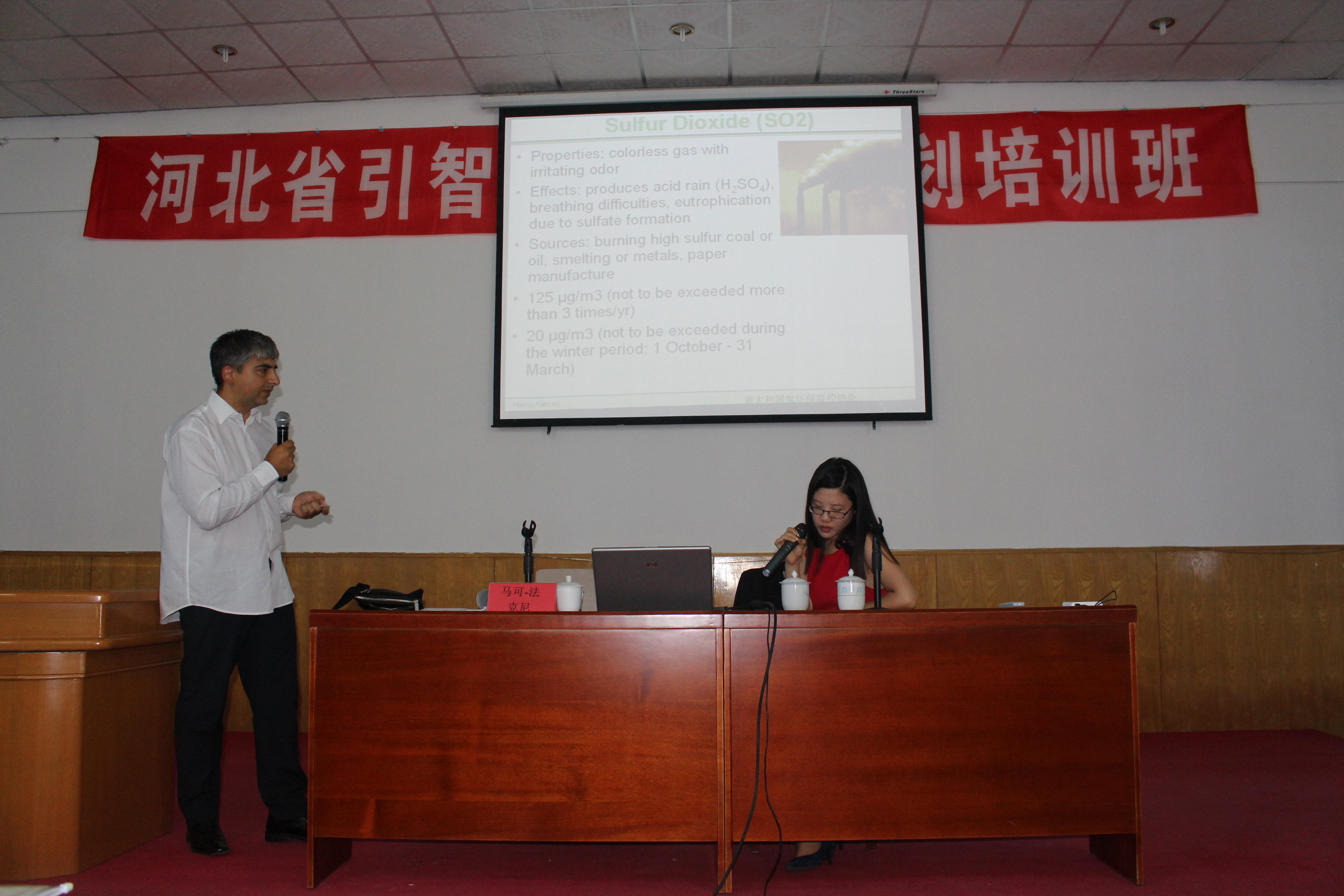 这次培训班经省政府批准,按照河北省《引智共建蓝天计划》实施方案,由河北省外国专家局邀请了来自美国、意大利、法国、日本、德国5个国家的7位专家以及中国的2位专家进行授课,由河北省环境保护厅组织环保系统人员参加培训。
