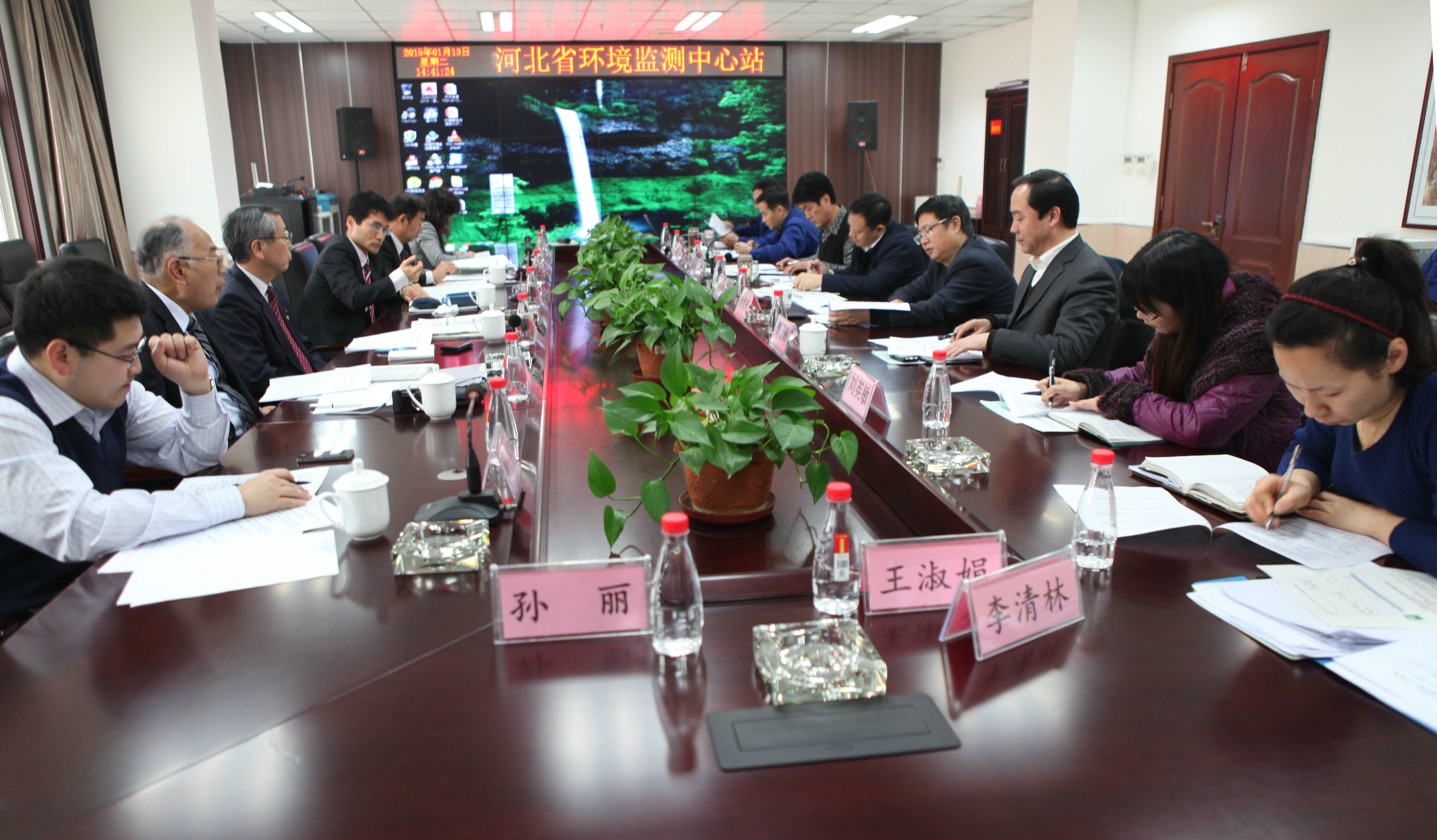 2015年1月13日,日本长野县协商团国际课白鸟博昭课长、西田节夫顾问及环境保全研究所大气环境部细井要一部长、花冈良信研究员一行4人莅临河北省环境监测中心站就环境监测领域开展交流合作进行访问,杨智明副厅长主持召开座谈会,双方就合作方向和方式进行了深入沟通。谢剑锋站长、谷嵩副站长、刘小强站长助理等人参加座谈。