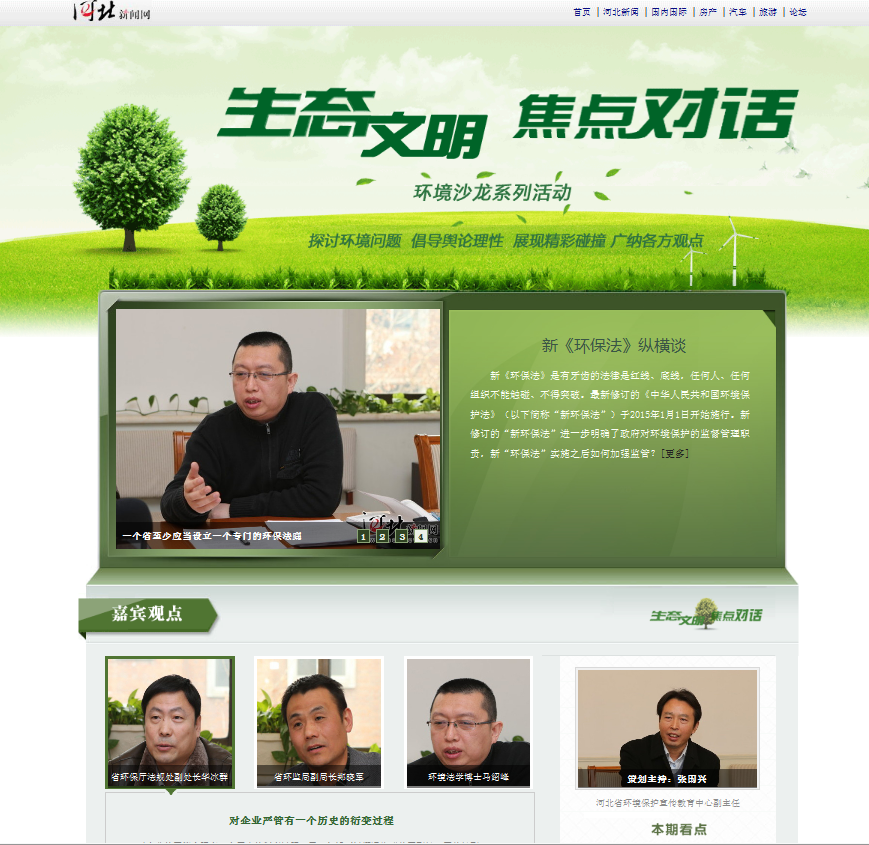 3月27日,由河北省环境保护宣教中心主办的系列谈话节目《环境沙龙》在河北新闻网正式上线。据了解,这种以沙龙形式制作的环保节目在全国尚属首创。
