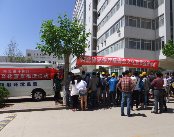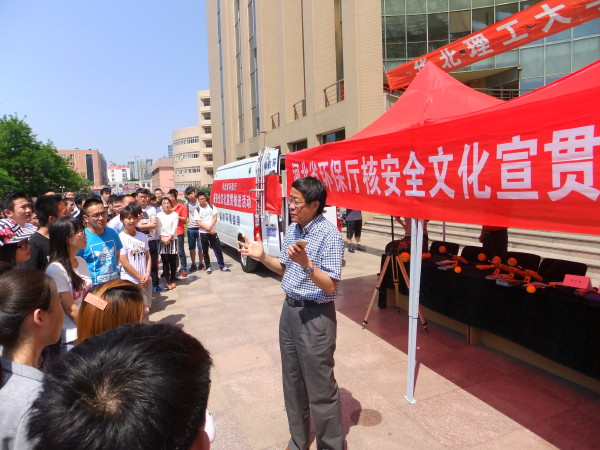 2015年5月19、20日,省环保厅分别在在秦皇岛市河北科技师范学院和唐山市华北理工大学开展核安全文化宣贯活动。省环保厅宋春婴巡视员参加宣贯活动并与广大师生进行了互动。厅辐射安全管理处、省辐射环境管理站主要负责同志、环境辐射专家、相关工作人员参加了宣贯活动,秦皇岛、唐山市环保局领导和有关同志也参加了这次活动。宣贯活动通过科普知识展板、辐射仪器展示、现场政策解读、辐射安全问题咨询、手机辐射检测、发放环境保护手册等形式,宣传了我国核安全文化的法律法规,普及了环境辐射安全知识。