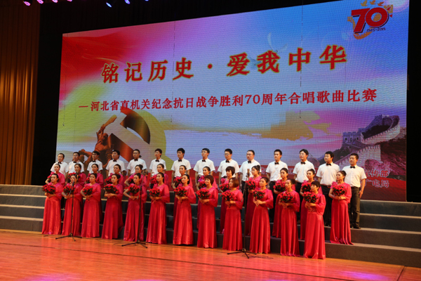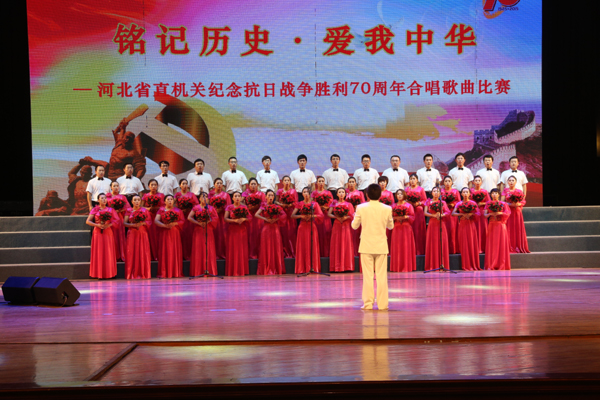 为纪念中国人民抗日战争暨世界反法西斯战争胜利70周年,8月21-22日,中共河北省委省直工委、中共河北省委宣传部、河北省文化厅、河北省新闻出版广电局在河北会堂举办了“铭记历史、爱我中华”合唱比赛,省直机关共有44支代表队参加。