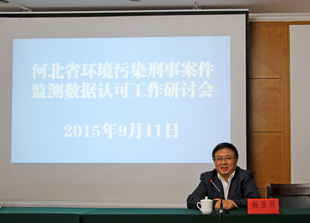 2015年9月11日, 全省环境污染刑事案件监测数据认可工作研讨会在石家庄召开。各设区市环保局、省直管县环保局负责环境污染刑事案件监测数据上报审核工作的科(处)长和具体负责数据审核上报工作的同志参加了会议。