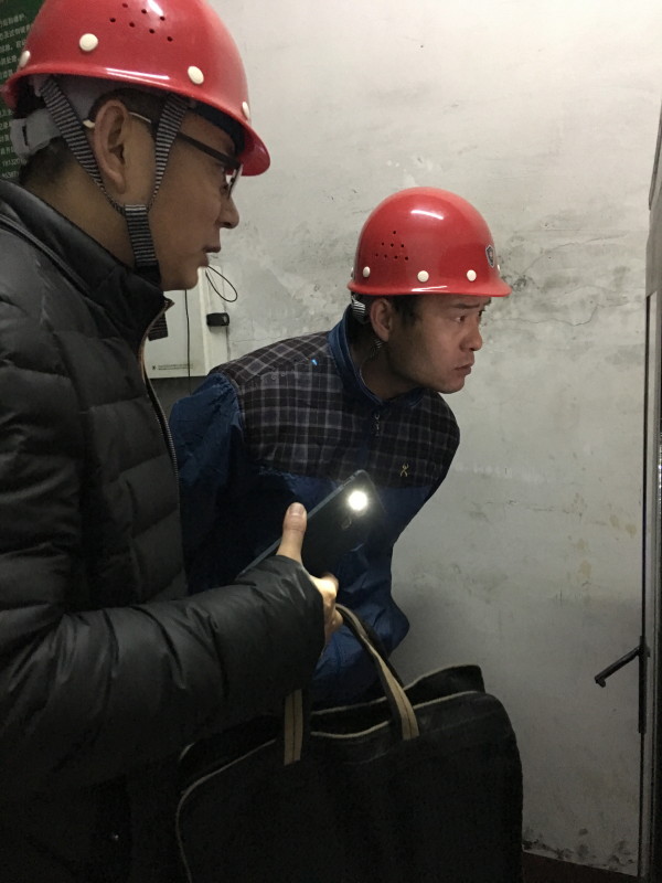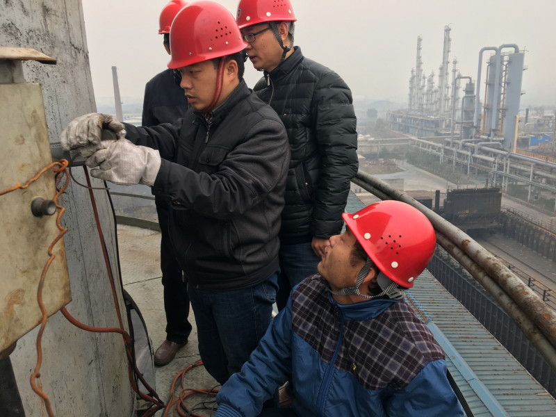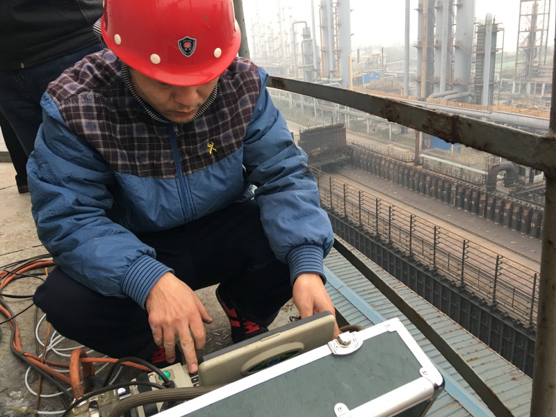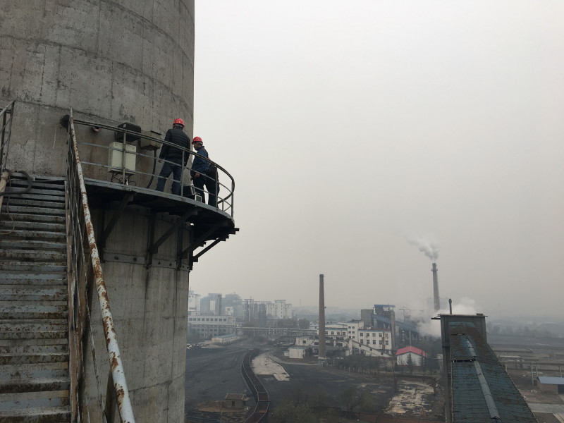 对高架源进行检查,32米高空的烟囱采样口,进行手工监测