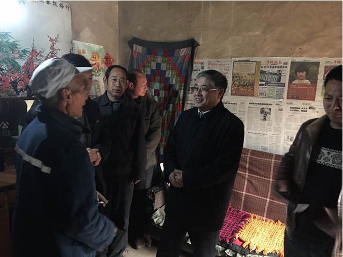 2017118日,厅党组副书记、副厅长杨智明同志带领人事与离退休干部处有关负责同志到我厅精准脱贫帮扶点邢台市内丘县集上赛村、大和庄村进行调研走访和慰问。杨智明一行冒着寒风走村入户看望了贫困户、老党员、五保户代表,每到一户都详细询问他们的生产生活情况,深入了解年货准备情况,并征求对驻村工作组和环保工作的意见和建议,勉励他们积极发展生产,努力改善生活,同时代表厅党组向他们致以节日的慰问和新春的祝福,为他们送去了米、面、油等慰问品。之后,杨智明一行又实地查看了集上赛瑞祥农业开发有限公司羊养殖项目、大和庄村民文化活动中心及活动广场等脱贫帮扶项目。