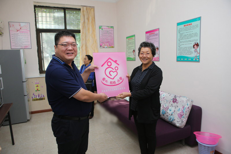 省总工会女职工委员会主任李国悦为“爱心妈妈小屋”授牌