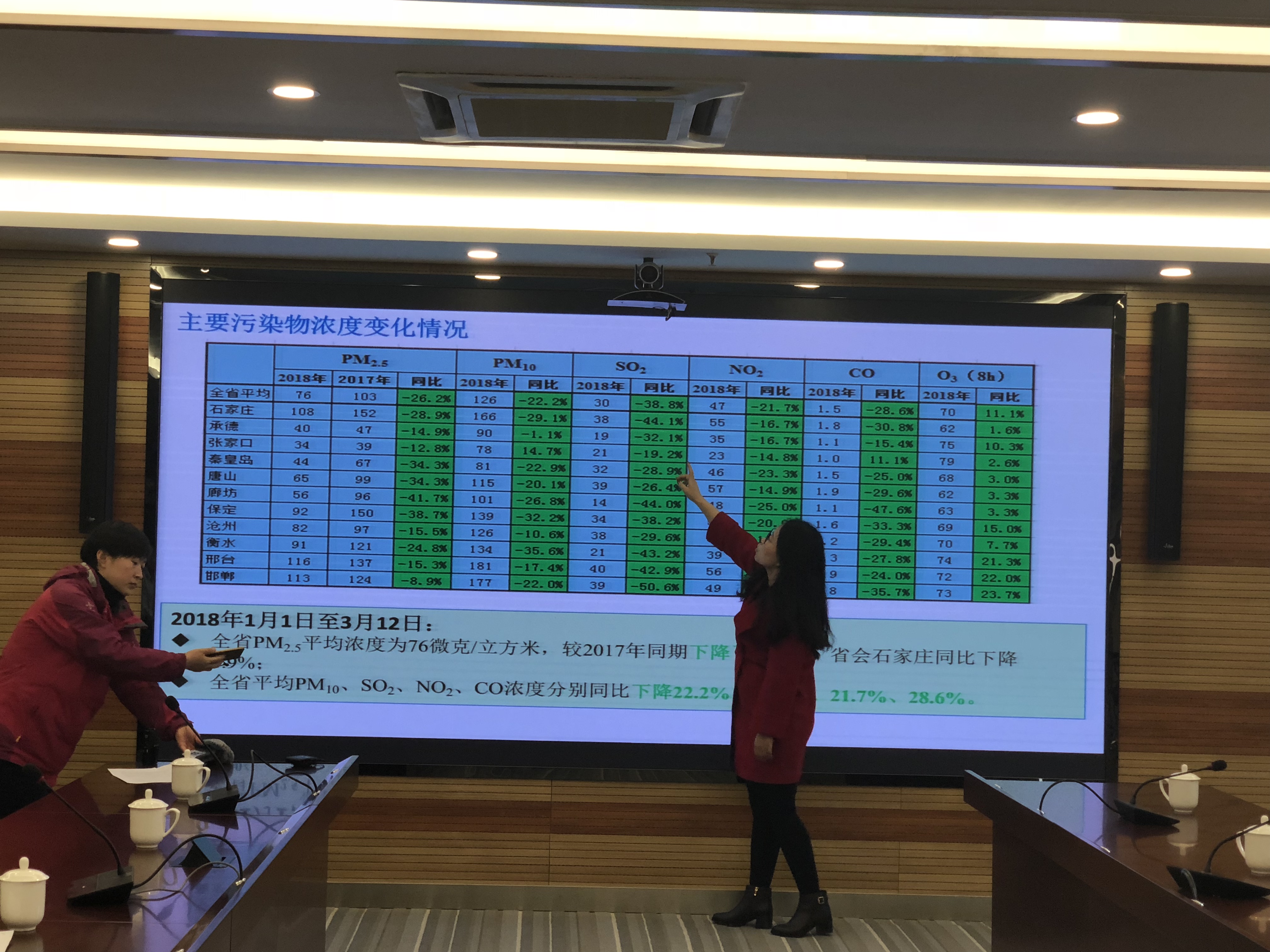 3月14日上午,我厅组织召开重污染天气过程新闻解读会,省环境应急与重污染天气预警中心主任王晓利、河北科技大学环境科学与工程学院院长崔建升、河北省气象局环境气象中心主任赵玉广三位专家对近日重污染天气形成过程、重污染天气情况和后期污染情况发展趋势进行解读。新闻解读会由省环境保护宣传教育中心副主任张国兴主持,河北电视台、河北电台、燕赵晚报、石家庄电台等多家媒体参加了会议。