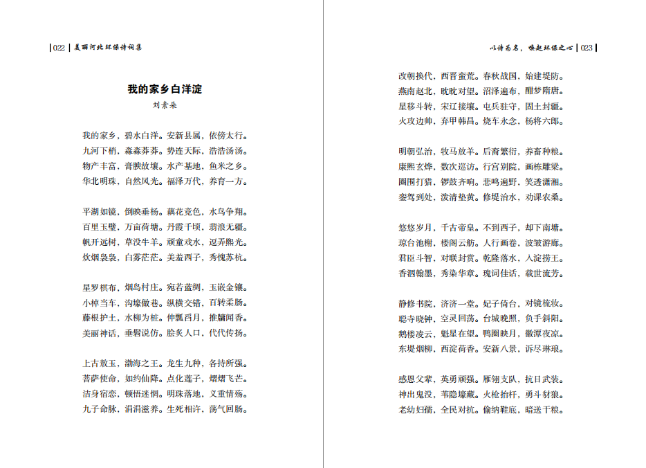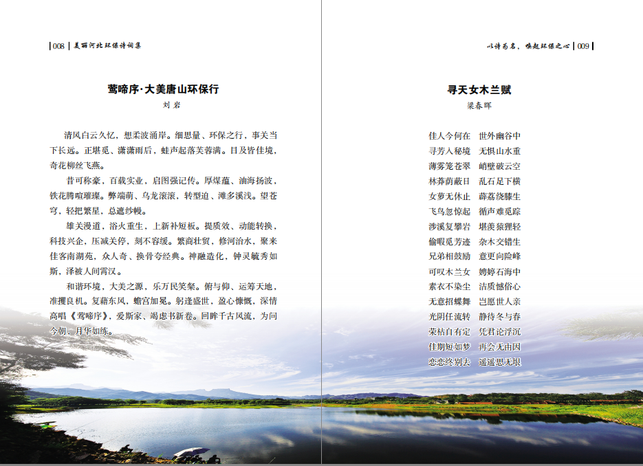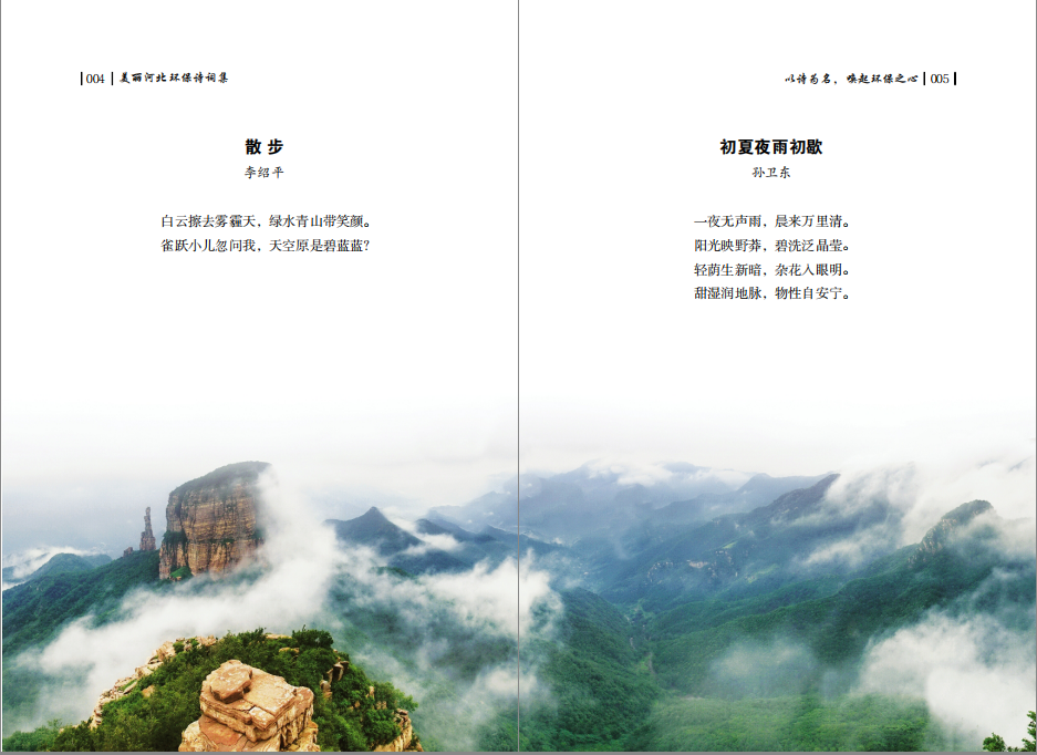 近日,首届“美丽河北”诗词大赛落下帷幕,获奖作品结集成书。本次大赛的目的是以诗为名,唤起人们环保之心,让更多的人参与到环保行列。大赛由我厅联合河北省作家协会举办,由宣教中心具体承办。
