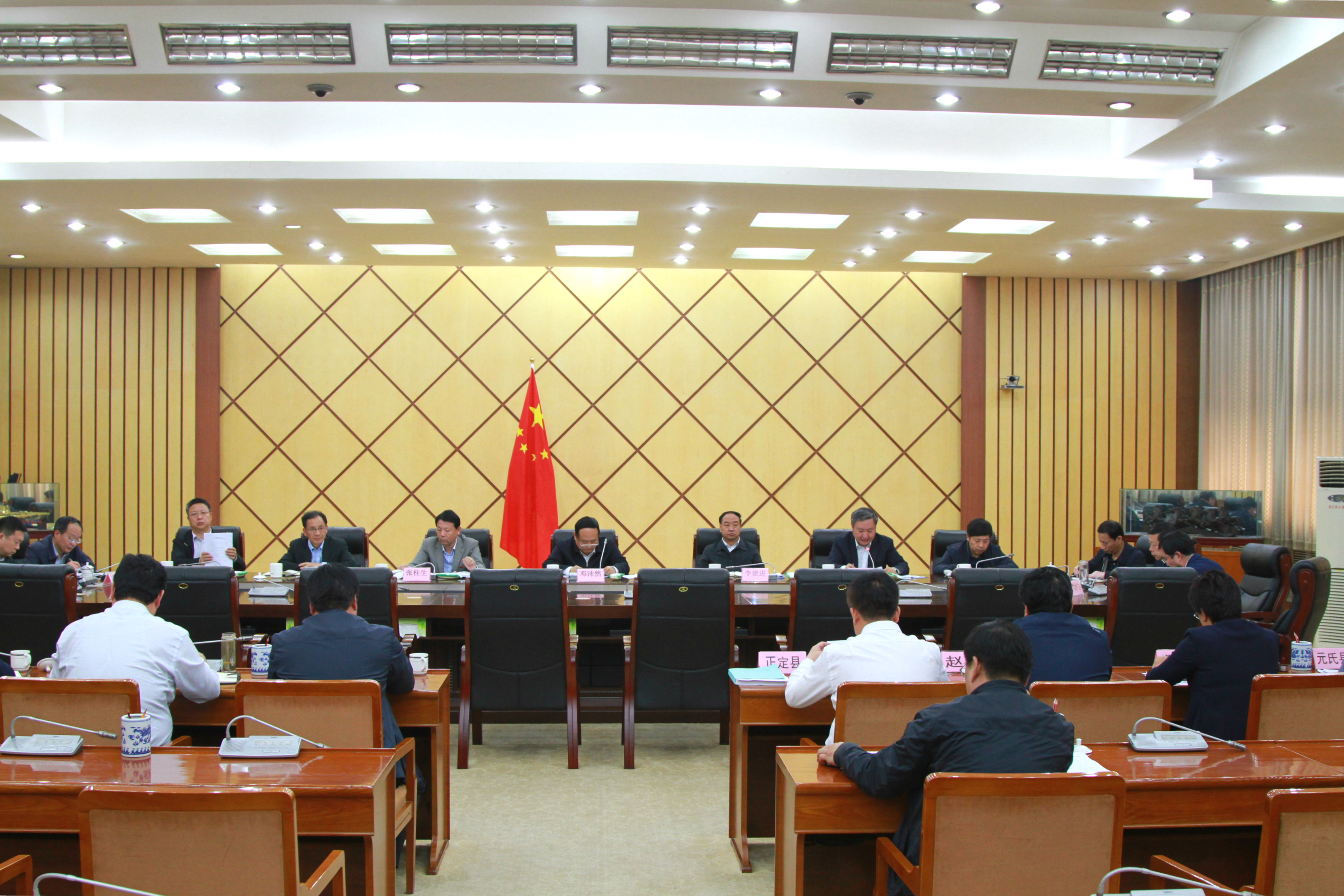 4月25日,省环保厅第一环境监察专员办公室会同石家庄市委、市政府召开专题会议,对石家庄市2017年度空气质量改善目标未完成的无极县、正定县、藁城区和赵县;冬防期大气污染治理考核指标未完成的无极县、高邑县、藁城区、深泽县和元氏县;2018年来连续三个月在全省空气质量综合指数排名中处于后20位的灵寿县、高邑县、元氏县和无极县等8个县(区)(无极县、正定县、藁城区、赵县、深泽县、元氏县、灵寿县、高邑县)进行了公开约谈。省环保厅环境监察专员张桂生,石家庄市委副书记、市长邓沛然,第一环境监察专员办公室副主任兼监察一处处长侯日升、石家庄市委副书记李德进、市政府秘书长郎金国出席会议。石家庄市副市长蒋文红同志主持约谈会。