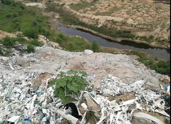现场检查发现,在大沙河定州段远远望去,河堤上堆满了生活垃圾、工业废渣、边角料、医疗废物等多种固体废物,各种垃圾“应有尽有”,形成了一个长约3公里的“垃圾带”。与长度同样惊人的,是“垃圾带”的宽度,垃圾一直从河堤延伸至河床上,斜坡高度达到10米左右。