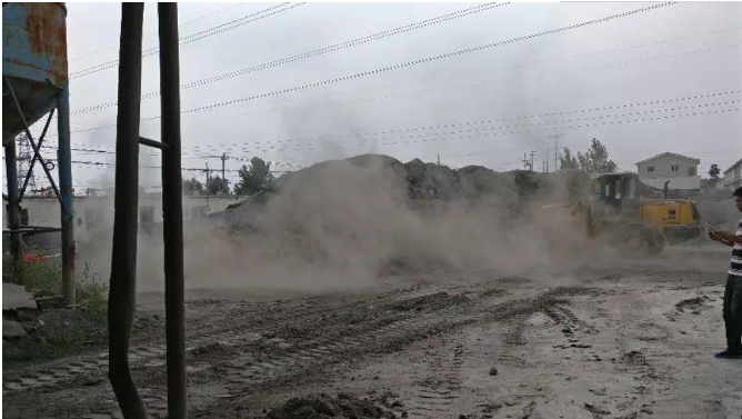 6月17日,督查组对河南省开封市顺河回族区土柏岗乡的河南省筑成新型建材有限公司检查时发现,该企业正在生产,粉尘收集处理设施不完善,物料未苫盖,扬尘污染严重。