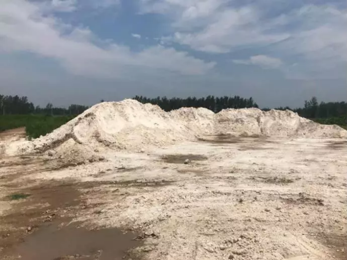 7月15日,督查组对山东省菏泽市单县时楼镇大窑旁的无名石灰物料堆场检查时发现,该堆场露天堆放大量石灰,未采取防尘抑尘措施。