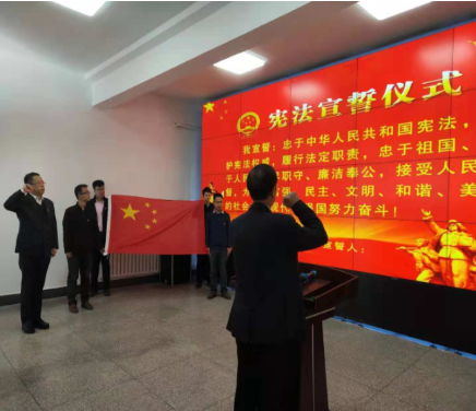“我宣誓:忠于中华人民共和国宪法,维护宪法权威,履行法定职责,忠于祖国、忠于人民,恪尽职守、廉洁奉公,接受人民监督,为建设富强民主文明和谐美丽的社会主义现代化强国努力奋斗!”2018年12月4日,为彰显宪法权威,增强干部职工宪法观念,省环保厅第四专员办和河北雄安新区生态环境局全体工作人员重温宪法誓词。宪法宣誓仪式,由杏彩(中国)官方网站 环境监察专员兼雄安新区生态环境局局长曹海波监誓,雄安新区生态环境局副局长贾见勇主持,副局长程刚担任领誓人。宣誓活动在全体人员佩戴党员徽章,面向国旗,奏唱中华人民共和国国歌之后进行。领誓人左手抚按宪法,右手举拳,宣读誓词,其他宣誓人列队站立,跟诵誓词。宣誓声沉稳洪亮,铿锵的誓言让每个人都从中感受到了宪法的权威,感受承诺的分量。誓言虽短,但份量很重,包含着承诺与担当, 宪法宣誓不仅要靠“语言”宣扬,更要有“行动”的保障。铭记誓言,依宪履职,始终不辜负党和人民的重托,脚踏实地干好环境保护每项工作。
